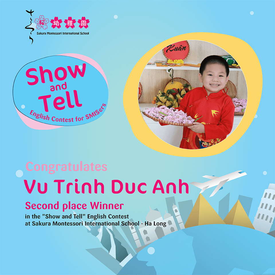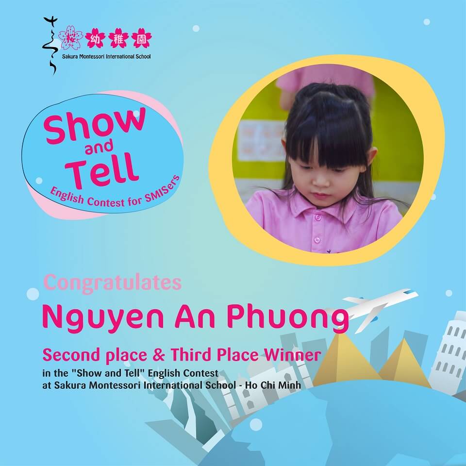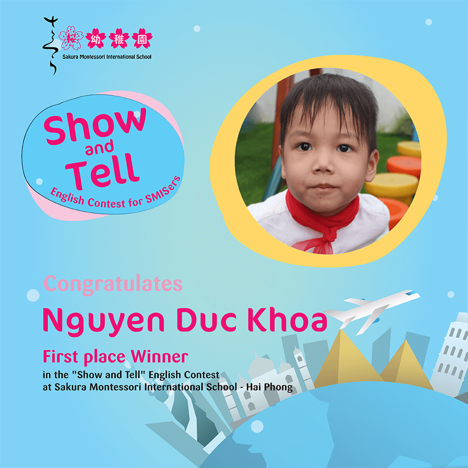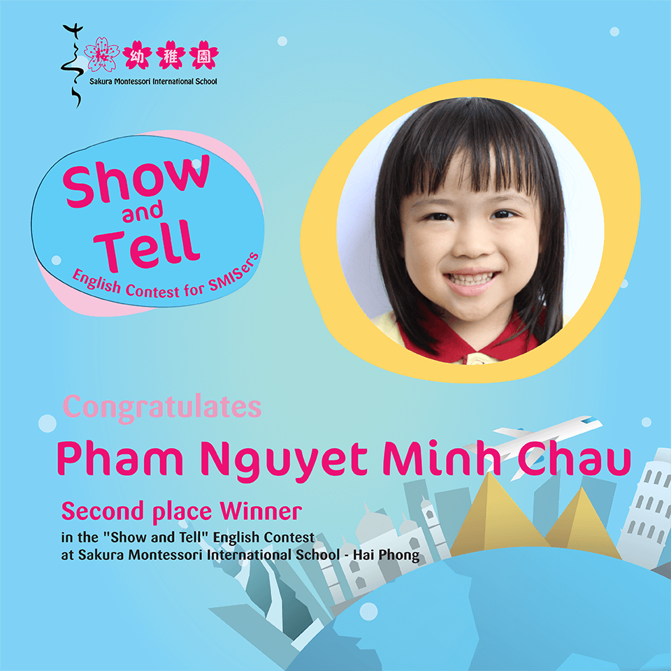 Một lần nữa, Sakura Montessori xin chúc mừng các SMISers đạt giải cũng như các bạn nhỏ Sakura Montessori trên toàn quốc cùng chinh phục Cuộc thi “Show and Tell” năm nay. Chúc các con luôn giữ lửa tình yêu ngôn ngữ, tiếp tục rèn luyện và trau dồi kiến thức và kỹ năng thật tốt, chuẩn bị tâm thế vững vàng cho các cuộc thi sắp tới.
