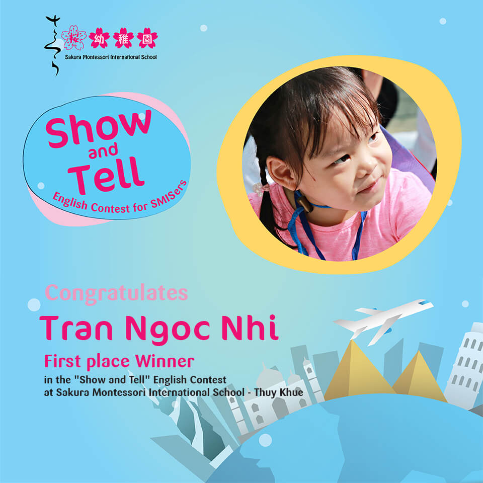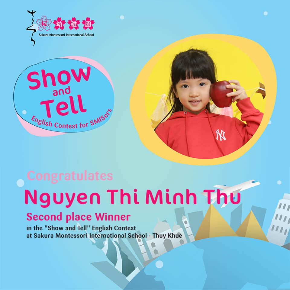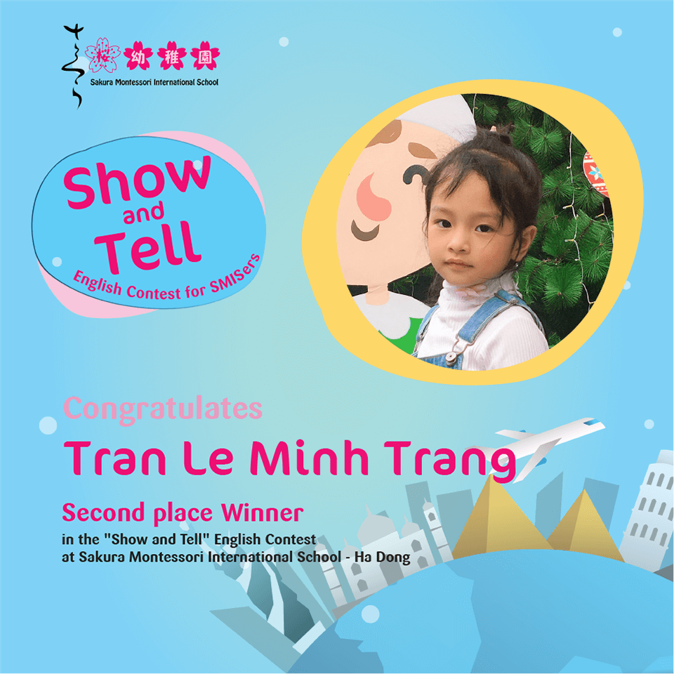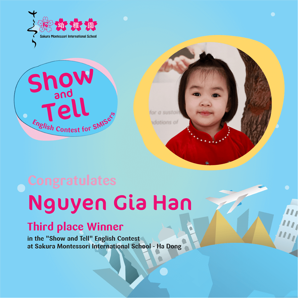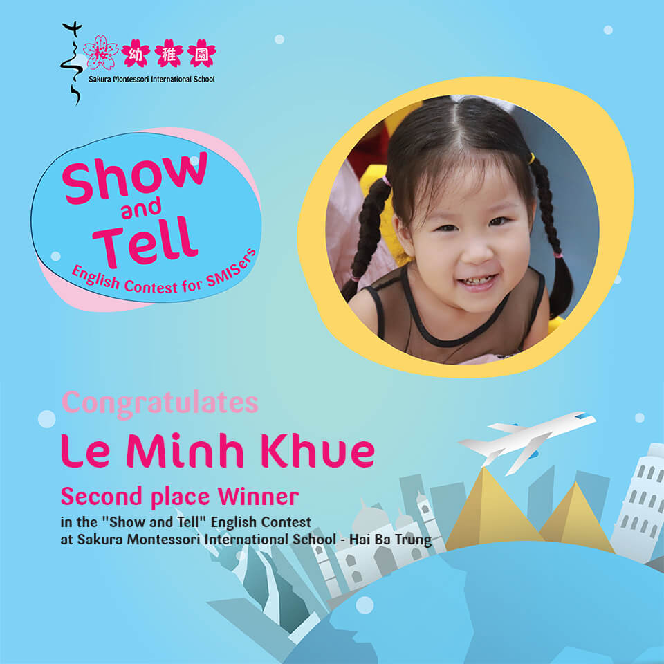 Một lần nữa, Sakura Montessori xin chúc mừng các SMISers đạt giải cũng như các bạn nhỏ Sakura Montessori trên toàn quốc cùng chinh phục Cuộc thi “Show and Tell” năm nay. Chúc các con luôn giữ lửa tình yêu ngôn ngữ, tiếp tục rèn luyện và trau dồi kiến thức và kỹ năng thật tốt, chuẩn bị tâm thế vững vàng cho các cuộc thi sắp tới.