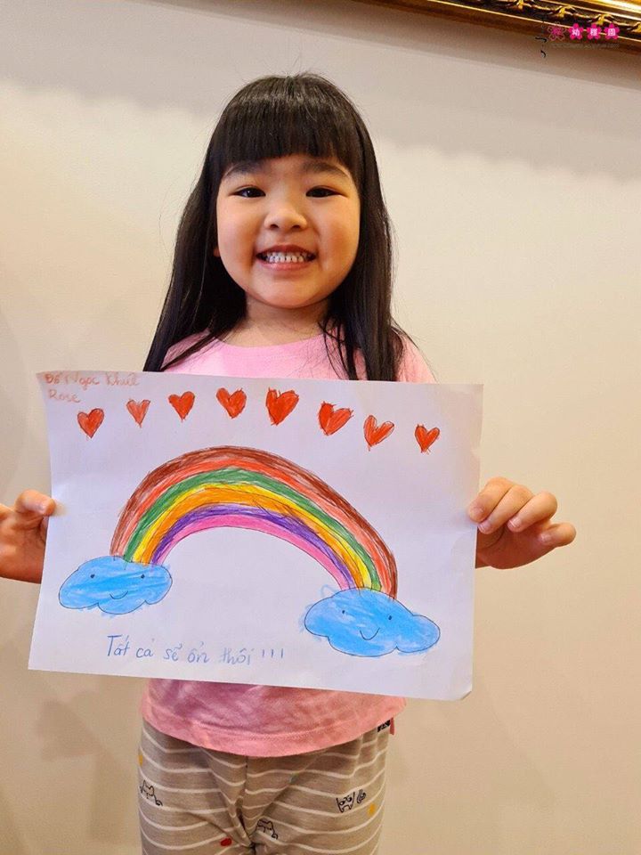 Bằng những sắc màu rực rỡ, những vật liệu có sẵn cùng khả năng sáng tạo không giới hạn, đặc biệt là tinh thần sẻ chia, đồng cảm, là tình yêu thương vô hạn cùng sự khâm phục đáng kính dành cho tất cả các y bác sĩ, những người nơi tuyến đầu chống lại đại dịch, các con đã cùng nhau lan tỏa những thông điệp ý nghĩa tới tất cả cộng đồng.