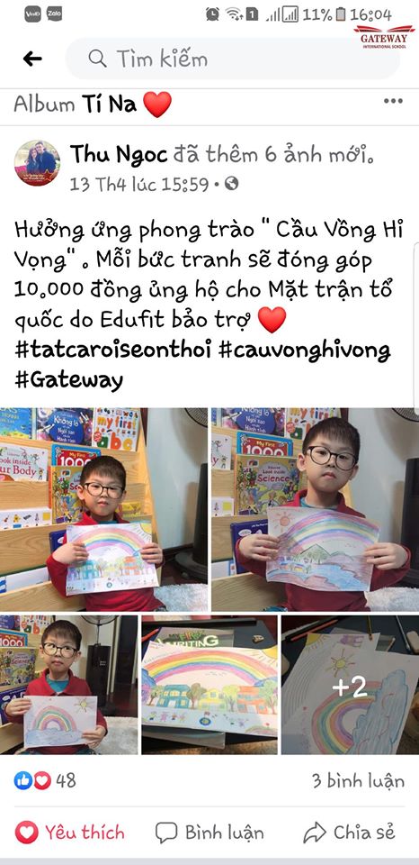 Chiến dịch “Cầu vồng Hy vọng” do hệ thống Trường Phổ thông Quốc tế Gateway và Trường Mầm non Sakura Montessori, Trường Mầm non Ikids Montessori bảo trợ đã khép lại sau một tuần phát động. Thời gian tuy ngắn ngủi nhưng chừng đó là đủ để cảm nhận những tình cảm yêu thương đong đầy của các bạn nhỏ và Quý Phụ huynh dành cho những người ở tuyến đầu trong cuộc chiến chống lại dịch bệnh. Chừng đó cũng là đủ để những bài học vỡ lòng đầu tiên về tình yêu nước chạm đến mỗi trái tim nhỏ bé, là đủ để thông điệp “Tất cả rồi sẽ ổn thôi” cùng với tình yêu thương, lạc quan, hy vọng lan tỏa đến tất cả mọi người.