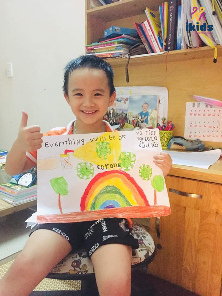 Những bức tranh là tình cảm, sự sáng tạo và hơn tất cả, là thời gian gắn kết yêu thương giữa Nhà trường-Bố mẹ và Học sinh thân yêu. Những bức tranh giản dị nhưng chứa đựng niềm tin vào tương lai tươi sáng, chiến thắng dịch bệnh Covid-19 đã được thể hiện rất sáng tạo: Từ những bức tranh được vẽ bằng bút sáp, màu nước; tranh tạo hình từ củ quả, viên kẹo màu sắc, slime, mảnh ghép lego, cắt dán… đến những giai điệu âm nhạc, những bài hát lấp lánh niềm hy vọng vào tương lai.