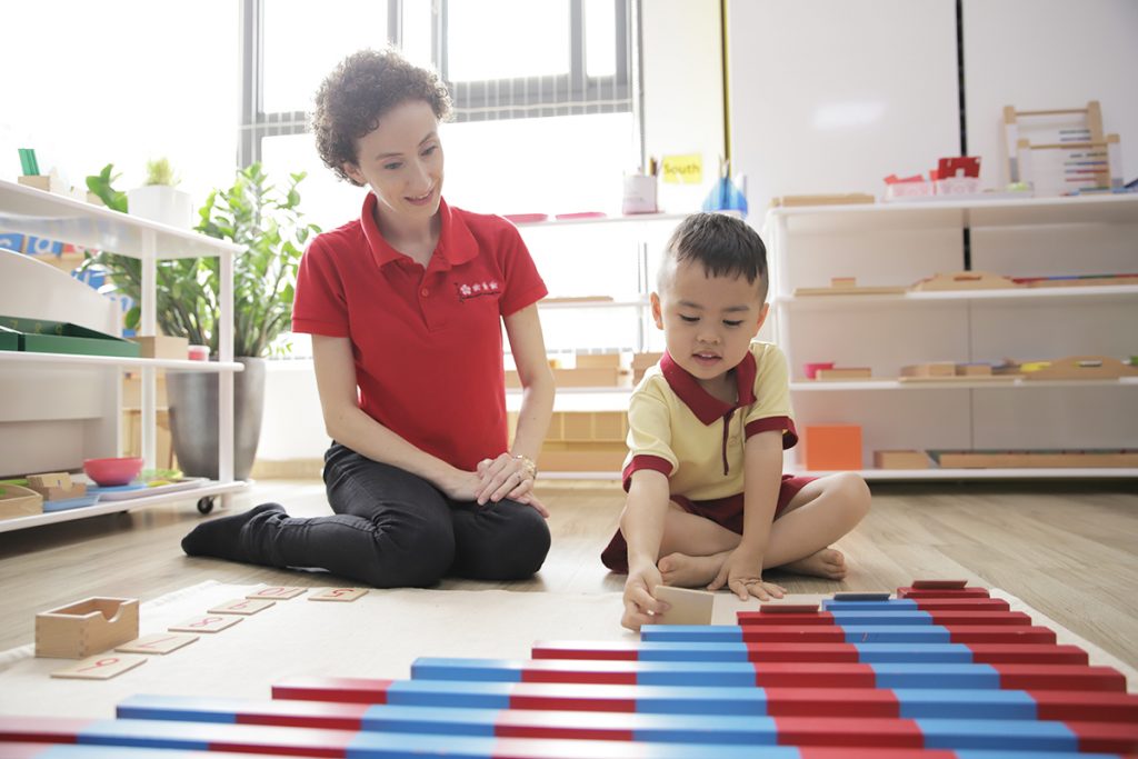Các bạn nhỏ luôn hào hứng khi được học với giáo viên bản ngữ, giáo viên nước ngoài – Ảnh: Trường mầm non Sakura Montessori
