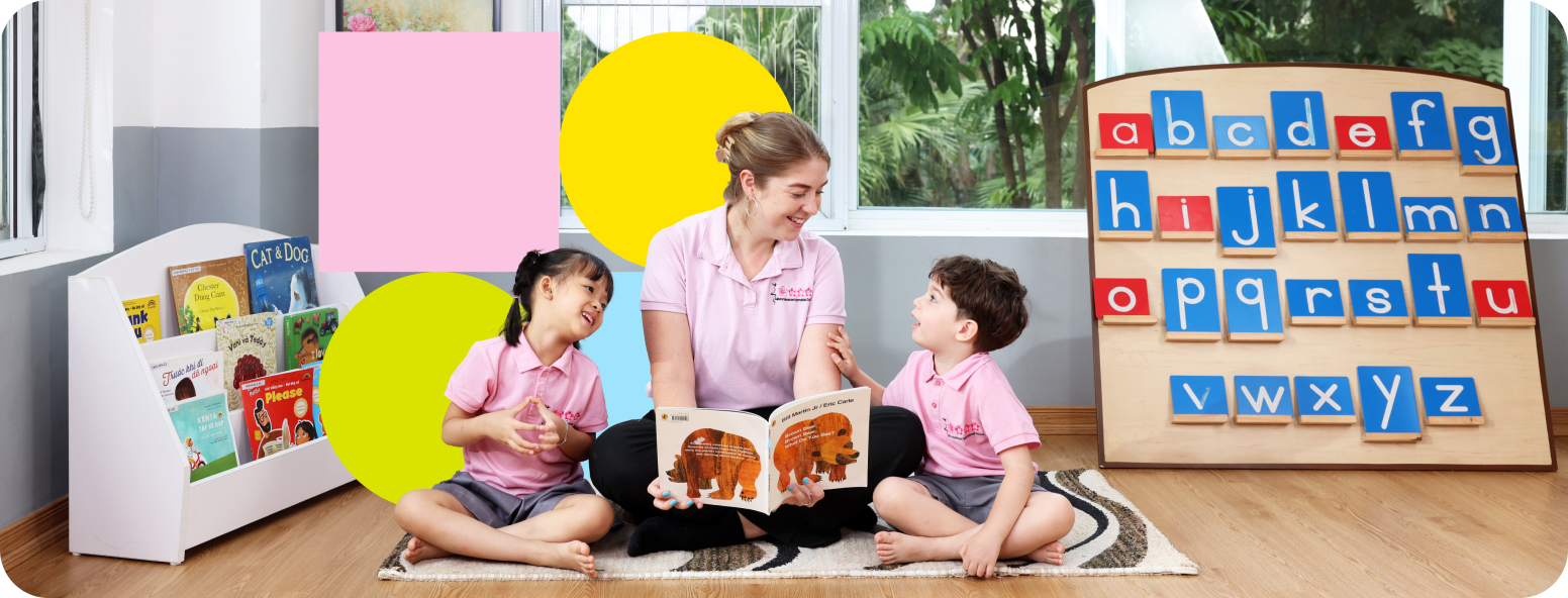 Chương trình Tiếng Việt được thiết kế với phương pháp và mục tiêu riêng phù hợp với Học sinh từng nhóm 0-3 và 3-6 tuổi.