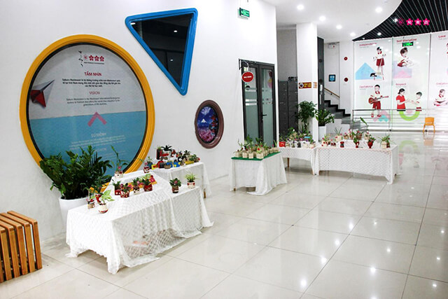 Đặc biệt hơn nữa, những tác phẩm cây cảnh đầu tay của các con sau những giờ học đặc biệt đã được các cô giáo sắp xếp và trưng bày tại sảnh tầng 1 của trường vào ngày 18/10. Không khí của buổi triển lãm diễn ra sôi nổi với sự háo hức và chờ đợi của SMISERS. Các con cùng nhau tham quan triển lãm, trầm trồ chiêm ngưỡng sản phẩm cây cảnh của các bạn. Đôi khi lại văng vẳng đâu đó tiếng các con nhỏ to: “Đây là cây của tớ này!” “Cậu trồng cây tặng ai? – Tớ trồng tặng bà/ tớ trồng tặng mẹ đấy!”
