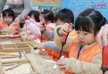 Hô biến những mảnh gỗ đơn giản được chà nhám cẩn thận, tự tay quai búa, đóng đinh, bắt vít để tạo nên những chiếc máy băng trực thăng, những chú tuần lộc gỗ ngộ nghĩnh… các bạn nhỏ Sakura Montessori Lương Yên đã có những trải nghiệm làm...