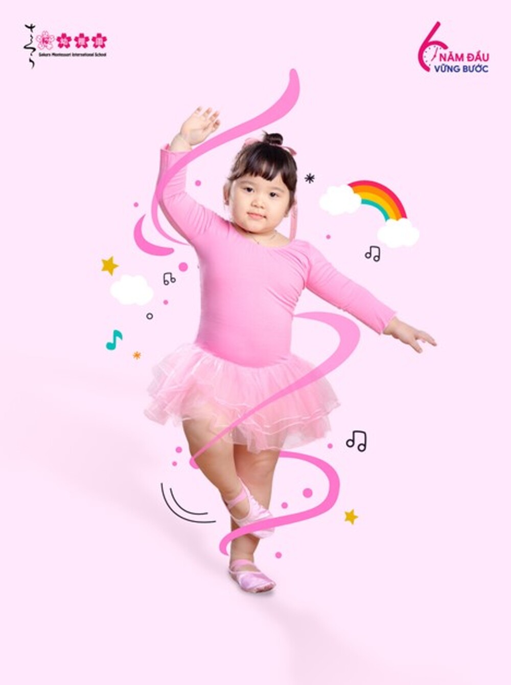 Kem – Nàng công chúa ballet 4 tuổi say sưa với những động tác khó. Sự uyển chuyển của bé Kem (Nguyễn Ngọc Tuệ Giang – Học sinh Sakura Montessori Tây Hồ Tây) là thành quả của việc tập luyện nghiêm túc, không nản lòng trước những động tác khó và là cả sự đồng hành, đầu tư trong 6 năm đầu đời của ba mẹ.