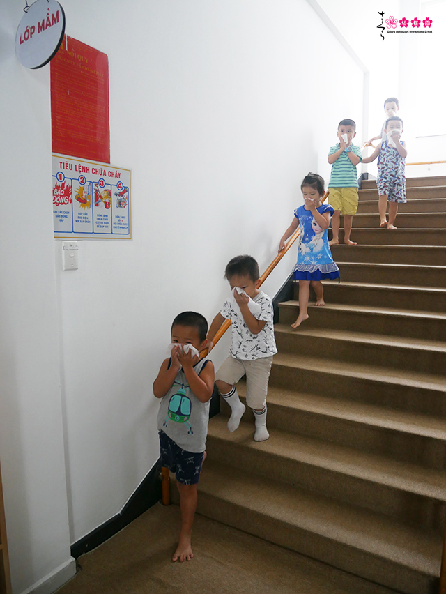 Dạy trẻ về kỹ năng sống là một trong những nhiệm vụ chiến lược của Trường Mầm non Sakura Montessori Hồ Chí Minh. Đó là lý do trong những tuần đầu tháng 9, với sự giải thích và hướng dẫn của các cô giáo, các bạn nhỏ Sakura đã cùng nhau học và thực hành các kỹ năng thoát hiểm để ứng phó kịp thời với những trường hợp khẩn cấp như hỏa hoạn.