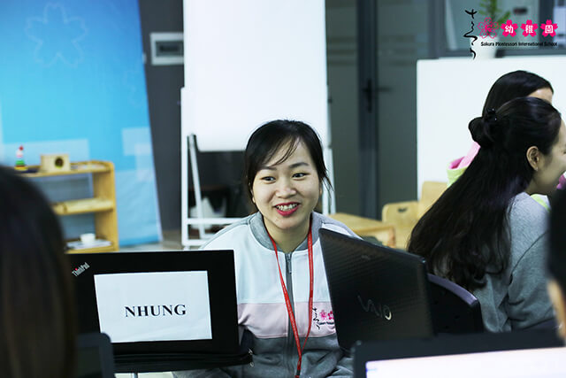 Chia sẻ tại buổi đào tạo đầu tiên, cô Thanh – giáo viên cơ sở Sakura Montessori Hà Đông cho biết: “Tôi thực sự cảm thấy may mắn khi trở thành một trong những thành viên của khóa học. Sau khi tham gia khóa học, tôi hi vọng có thể có thêm nhiều hiểu biết sâu sắc về phương pháp Montessori, đóng góp kiến thức mình thu nhận được cho Sakura Montessori nói riêng và cho nền giáo dục mầm non tại Việt Nam nói chung.”