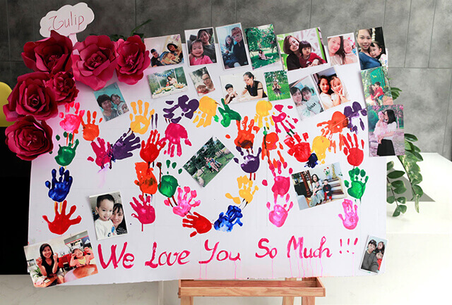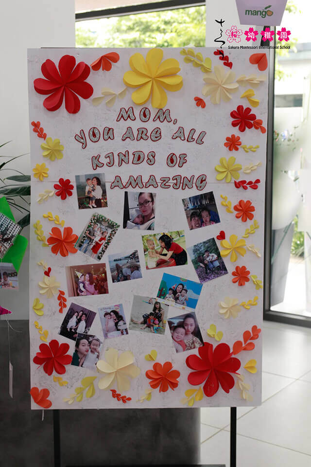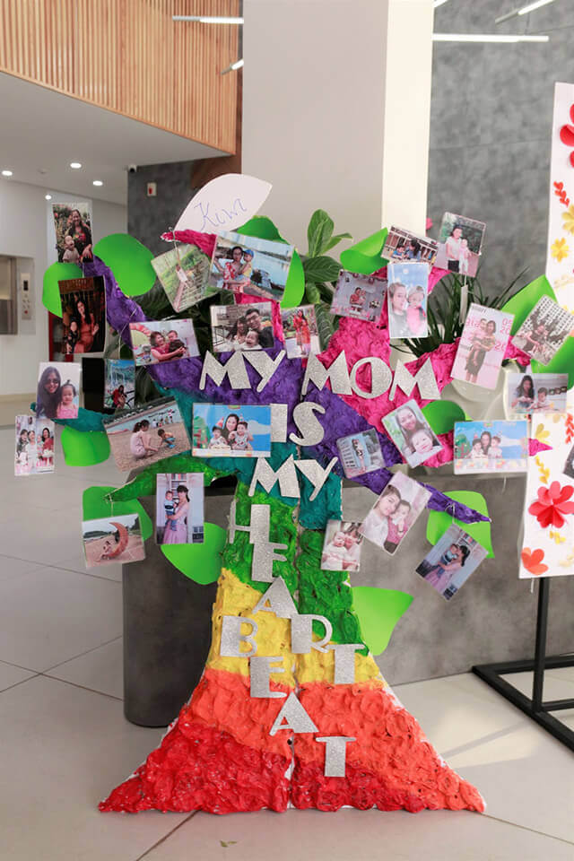 Lớp Tulip, Mango, Cherry và Kiwi sử dụng chính những tấm hình chụp các bạn nhỏ cùng mẹ, cùng bà của mình để tạo thành một bức tranh lớn. Tuy nhiên mỗi lớp lại chọn cho mình một cách trang trí khác nhau đầy sáng tạo và nổi bật. Trong khi lớp Tulip và Mango sử dụng những bông hoa giấy rực rỡ sắc màu để trang trí, thì lớp Cherry lại biến tấu khung tranh thành hình trái tim, thể hiện tình yêu của các con dành cho bà, cho mẹ. Lớp Kiwi lại lựa chọn làm cho mình một cây cầu vồng đơn giản, nhưng chứa đựng rất nhiều tình cảm và tâm huyết của các con trong đó.