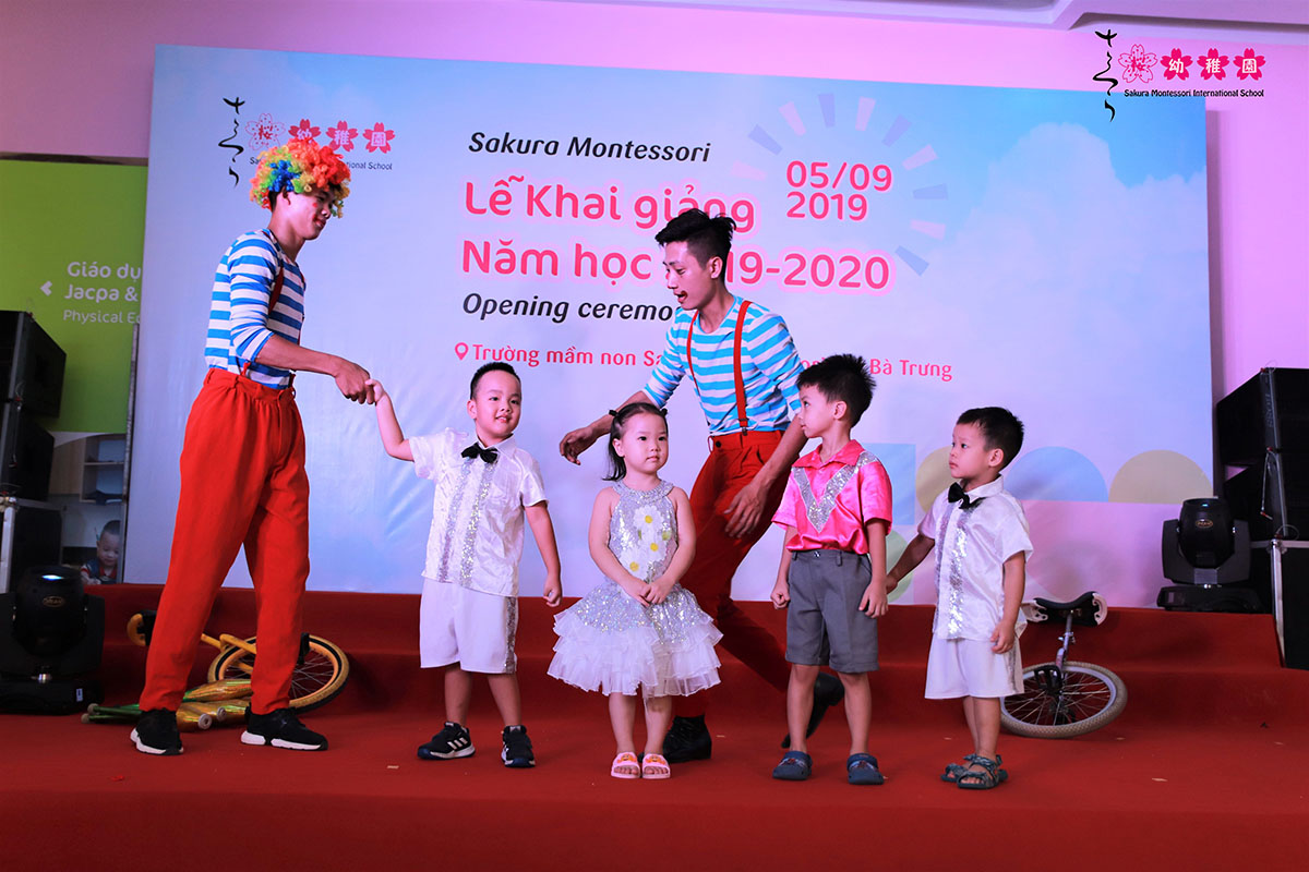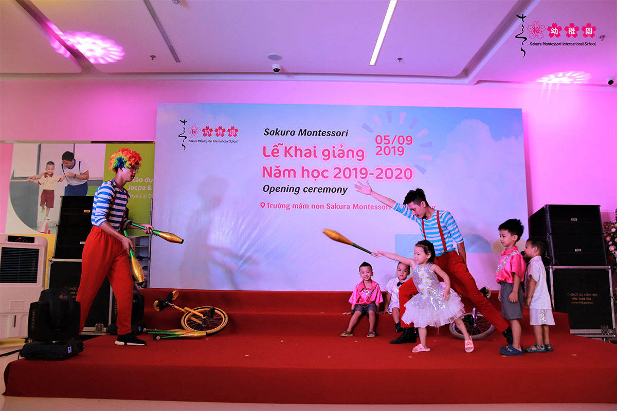 Không khí Lễ khai giảng càng tưng bừng, náo nức hơn nữa khi những vị khán giả “nhí” khi cùng trầm trồ, ồ òa lên thích thú bởi các tiết mục “Tung hứng” và “Chú thợ xây vui tính” đến từ những nghệ sĩ chuyên nghiệp của Liên Đoàn Xiếc Việt Nam. Nhìn những nụ cười hớn hở cùng ánh nhìn xoe tròn đầy tò mò của các con, các cô giáo tin rằng các bạn nhỏ đã có những kỷ niệm thật khó quên trong buổi lễ khai giảng đầu tiên tại Sakura Montessori Hai Bà Trưng.