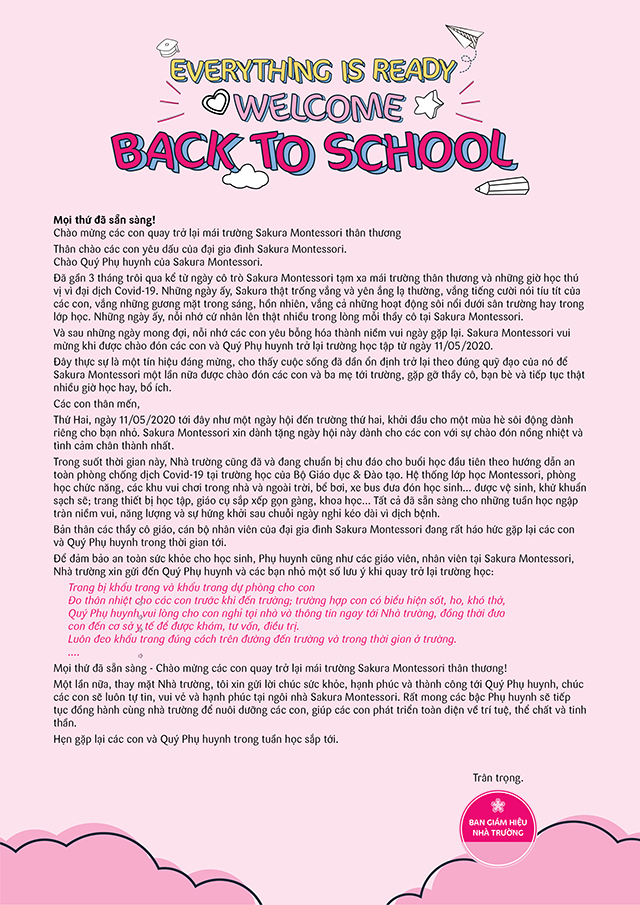 Bản thân các thầy cô giáo, cán bộ nhân viên của đại gia đình Sakura Montessori đang rất háo hức gặp lại các con và Quý Phụ huynh trong thời gian tới.