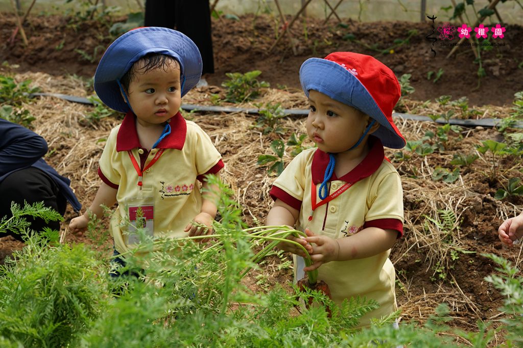 Cũng trong vườn sinh thái, khu vực nhà kính với các loại cây cà rốt và cây đậu đũa xanh tốt là địa điểm “đóng quân” tiếp theo của các bạn nhỏ. Đây là những nông sản được các bạn đặc biệt yêu thích. Bằng chứng cho điều đó chính là sự tập trung thu hoạch những củ cà rốt “bụ bẫm” và những cây đậu đũa tươi xanh. Có những củ cà rốt khá lớn khiến các bạn nhỏ phải dùng hết sức để nhổ lên rồi bật ngửa về đằng sau. Ba mẹ cùng đừng lo lắng nhé, ngã chỉ là cách chứng minh rằng không một ai thoát ra khỏi lực hút của Trái Đất thôi! Các con đều lấm lem nhưng chẳng hề gì vì các con đều rất vui với thành quả mà mình đạt được.
