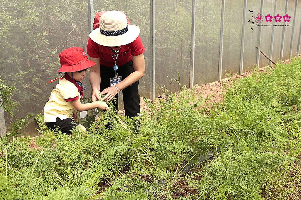 Sau chuỗi ngày mưa rả rích, thiên nhiên đã dành tặng cho cô trò Sakura Montessori Hà Đông một ngày đầy nắng vàng và gió nhè nhẹ để vui chơi và khám phá. Tại đây, các bạn nhỏ đã được trải nghiệm những công việc thực tế của các bác nông dân như: Tìm hiểu về các loại rau xanh, tưới nước cho cây, xới đất,… hay học cách thu hoạch các loại rau, củ, quả,… và tung tăng dạo chơi khu vườn, quan sát những sự khác biệt của môi trường ngoài lớp học. Một khu vườn mới lạ và hấp dẫn luôn gợi mở cho các con những điều lạ kỳ của thế giới tự nhiên nên bạn nhỏ nào cũng vui tươi, thích thú.