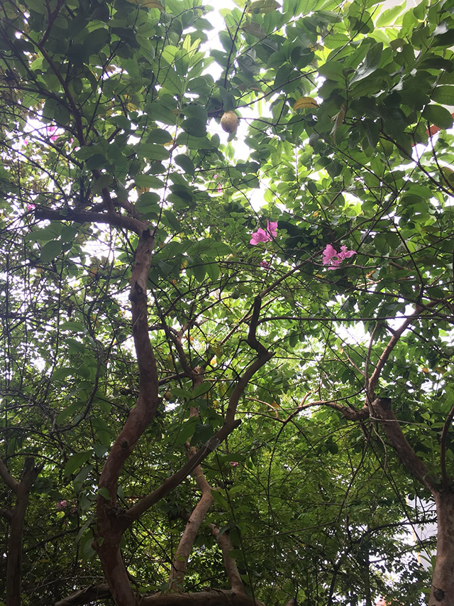 Ngày đó, trong vườn trồng khá nhiều loại cây ăn quả, phần lớn cây còn nhỏ và chưa ra trái. Khoảng sân trước có trồng một cây ổi, mùa Thu đầu tiên của Sakura Hải Phòng, cây chỉ có lá và hoa.