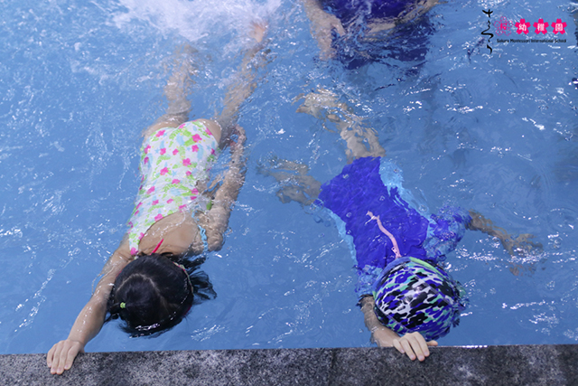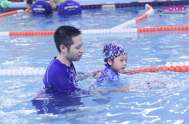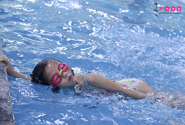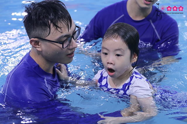 Ba mẹ cũng biết, học bơi giúp các con cải thiện thể lực đồng thời có thêm nhiều kỹ năng phòng chống đuối nước ở trẻ. Bởi vậy, tại trường mầm non Sakura Montessori quân Cầu Giấy, bơi Aqua-Tots là môn không thể thiếu trong các giờ học tại trường.