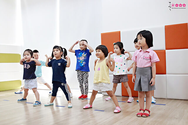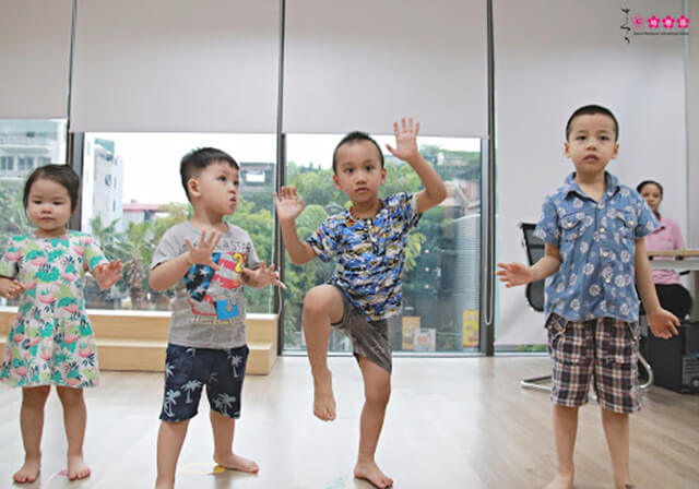 Các con không chỉ được làm quen với các nốt nhạc mà còn được cô giáo hướng dẫn các động tác biểu diễn, khuấy động không khí lớp học. Từ đó, các con hòa mình vào âm nhạc, thả lỏng cơ thể theo nhịp điệu và cùng hát vang những lời ca trong sáng.