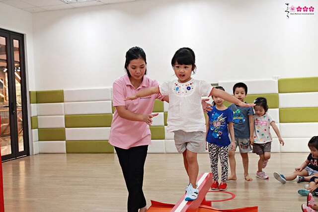 Vì vậy, để chuẩn bị cho sự kiện đó, ngay từ cuối tháng 9, các bạn nhỏ lớp Cherry, lớp Mango và lớp Coconut đã được thầy Tú giới thiệu những bài tập thú vị trong các giờ học Thể chất JACPA. Các con được tập luyện các bài tập khởi động khớp cổ chân, cổ tay, khớp vai, khớp gối đến bài tập vận động liên hoàn phức tạp hơn như chạy bộ, chạy ngắn, đi thăng bằng, đu xà, chui qua dây, bò em bé về đích…