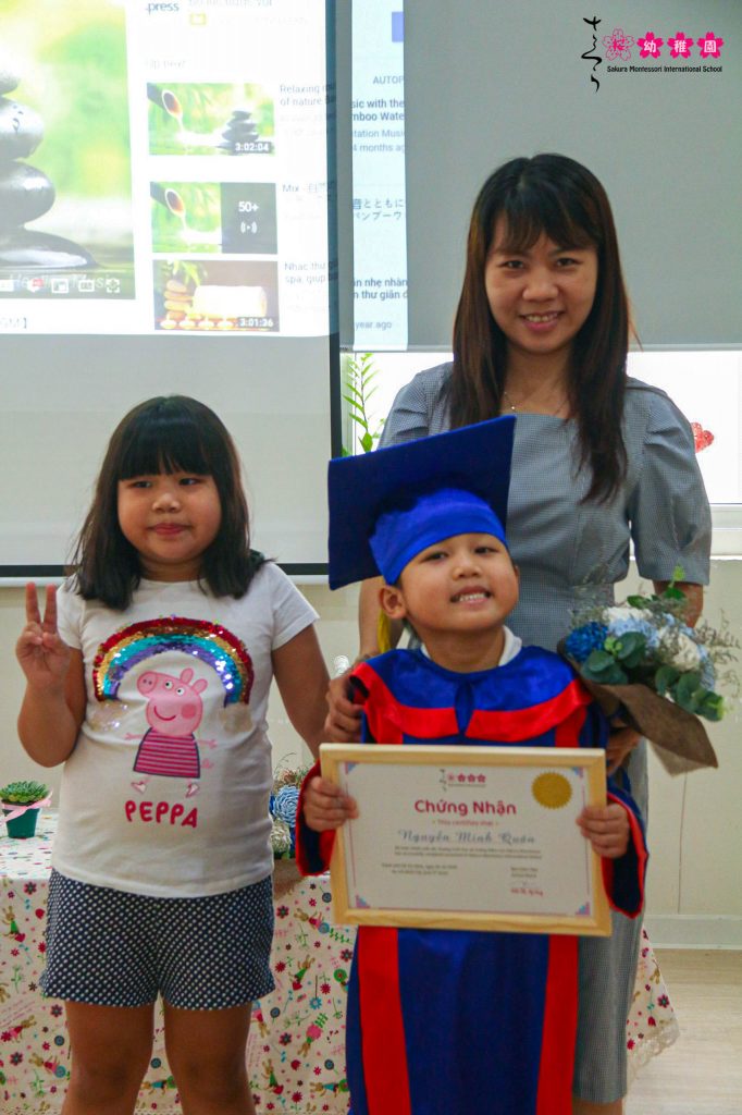 Với biết bao tình cảm và những kỷ niệm đáng nhớ của những ngày đầu tiên đi học, giờ đây các con đã xa mái trường mầm non Sakura Montessori Hồ Chí Minh thân yêu. Các cô luôn mong rằng dù có xa mái trường, xa vòng tay của các cô thì các con cũng vẫn ngoan ngoãn, lễ phép mang tất cả những điều hay lẽ phải mà các cô đã dạy dỗ các con để thể hiện với mọi người rằng: Các con là những em bé ngoan vững vàng bước vào ngưỡng cửa đầu tiên là ngôi trường tiểu học.