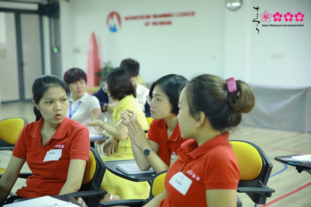 Ngay tại buổi đào tạo, giáo viên trực tiếp thực hành và trải nghiệm những gì được học để bổ khuyết những điểm còn thiếu và nâng cao tính hiệu quả khi áp dụng thực tiễn đối với học sinh trên lớp. Đó cũng chính là bí quyết giúp các giáo viên Sakura Montessori tạo nên những tiết học mới lạ, thú vị và bổ ích với trẻ, giúp các con làm chủ ngôn ngữ và phát triển khả năng giao tiếp tiếng Anh từ nhỏ.