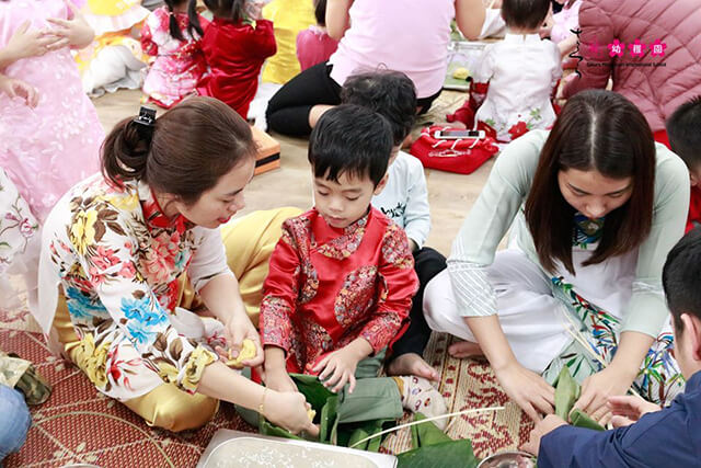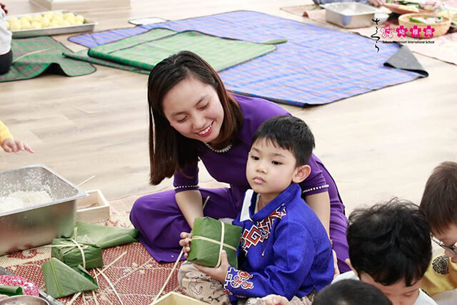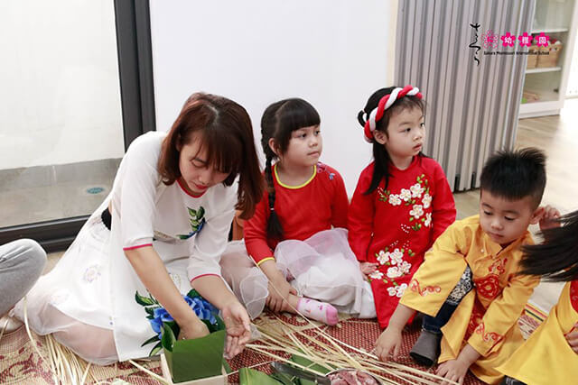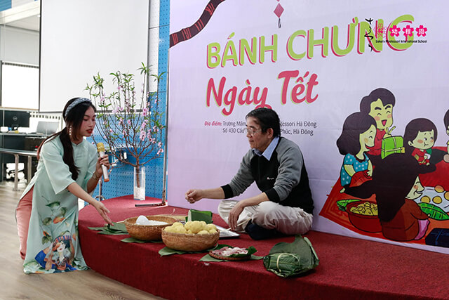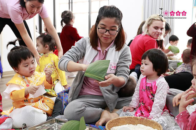 Để gìn giữ nét văn hóa này, vừa qua, Trường mầm non Sakura Montessori Hà Đông đã tổ chức sự kiện “ Bánh chưng ngày Tết”. Trong cái gió lạnh của mùa đông, ngồi quây quần bên nhau gói bánh và trông nồi bánh chưng vẫn luôn là một hình ảnh đẹp mà có lẽ bây giờ ít bạn nhỏ được trải nghiệm.