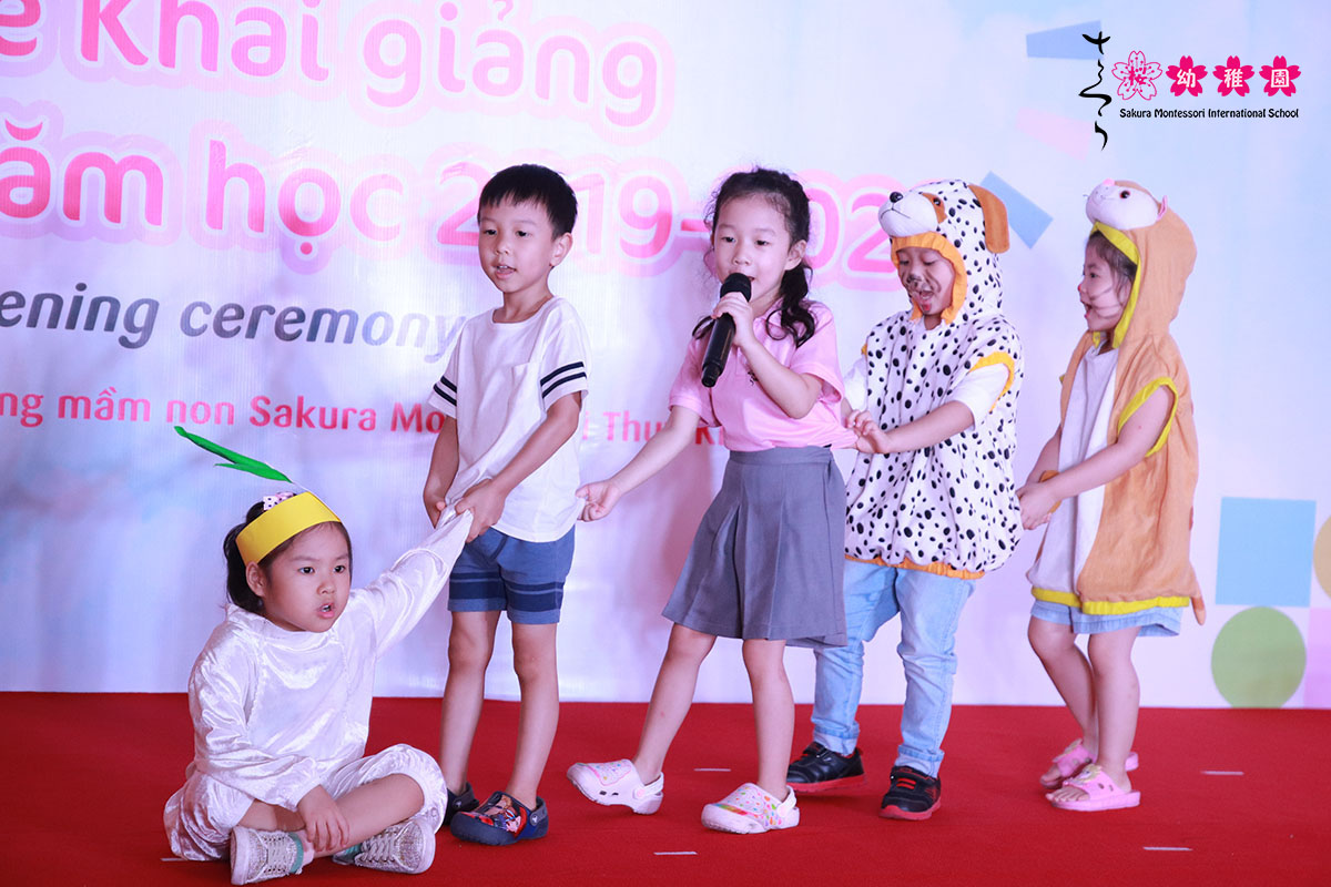 Ngay sau phần lễ chính là bữa tiệc âm nhạc đầy màu sắc do các SMISer Thụy Khuê và cô giáo thể hiện. Tuy rằng vẫn còn chút lạ lẫm với sân khấu nhưng cô và trò trường mầm non Sakura Montessori cơ sở Thụy Khuê đã cùng nhau tổ chức một ngày tựu trường thật đặc biệt và ấm áp.