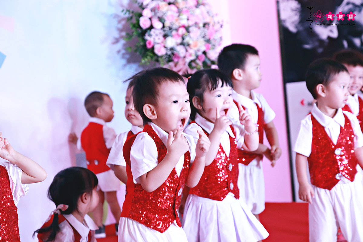 Từ các tiết mục sôi động và đầy hứng khởi “Shalala”, “Action Dance” đến những tiết mục hóa thân vô cùng đặc biệt trong vở kịch “Nhổ củ cải”,… các bạn nhỏ Sakura Montessori Thụy Khuê đã đưa ba mẹ đi từ bất ngờ này đến bất ngờ khác. Đặc biệt nhất không chỉ là những lời ca, tiếng hát ngây thơ, trong sáng mà còn là hình ảnh những chú cá mập tý hon lí lắc trên sân khấu với tiết mục “Baby Shark” và những cô cậu bé tinh nghịch, tràn đầy năng lượng cùng phiên bản vô cùng đặc biệt của “Bắc Kim Thang”, đôi khi lại lắng lại cùng giai điệu trầm lắng, đầy ý nghĩa mang tên “Friends song”.