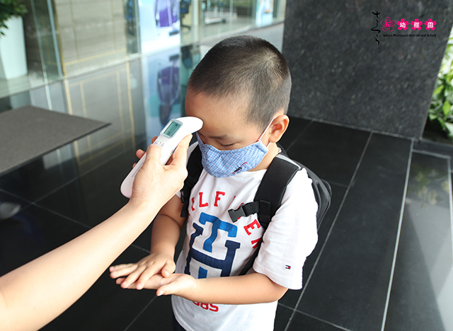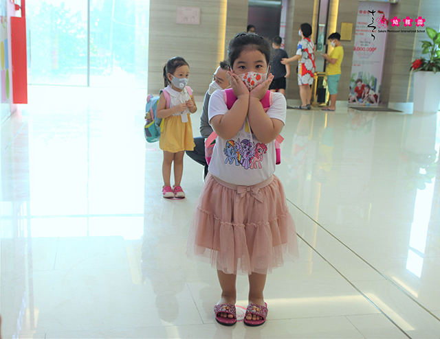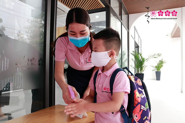 Ngay từ đầu giờ sáng, các thầy cô giáo tại Sakura Montessori đã có mặt sớm, tổ chức đón tiếp Quý Phụ huynh và các bạn nhỏ, chuẩn bị khẩu trang cho phụ huynh và học sinh, thực hiện đo thân nhiệt cho học sinh theo quy định của cơ quan Y tế, đồng thời chuẩn bị dung dịch rửa tay khô để sát khuẩn cho các con trước khi vào lớp học.
