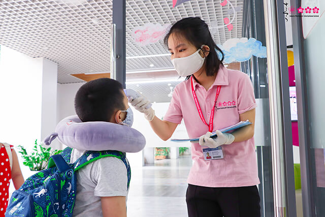 Nhà trường cũng luôn đặt vấn đề an toàn sức khỏe của các con, phụ huynh và các cán bộ nhân viên trong trường lên hàng đầu, thực hiện nghiêm túc và chặt chẽ các biện pháp phòng dịch và tuyên truyền đến từng cán bộ nhân viên cũng như phụ huynh và học sinh.