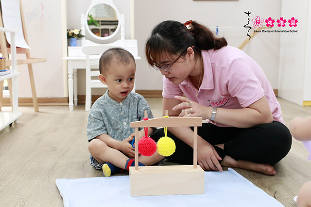 Giáo viên Montessori trong lớp học tiếp tục là những “người trợ tá đắc lực” của các con, hướng dẫn con trong từng hoạt động.