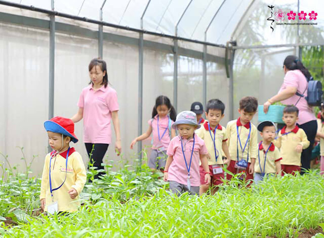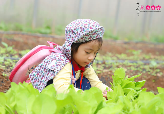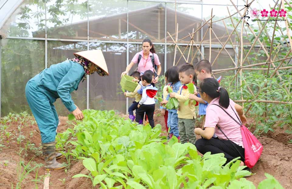 Tự tay thu hoạch rau trong vườn, trồng cây là hai hoạt động hấp dẫn nhất của các bạn nhỏ trường Sakura Montessori Cầu Giấy trong một ngày trải nghiệm thú vị tại nông trại Tomita Profarm.