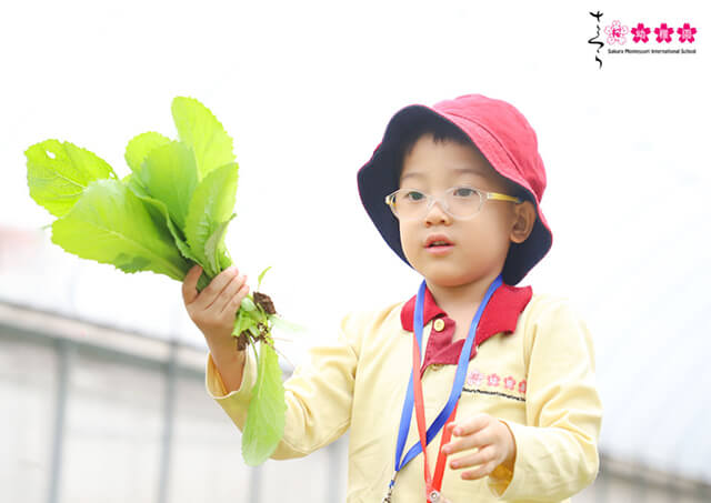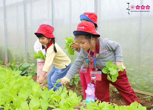 Tự tay thu hoạch rau trong vườn, trồng cây là hai hoạt động hấp dẫn nhất của các bạn nhỏ trường Sakura Montessori Cầu Giấy trong một ngày trải nghiệm thú vị tại nông trại Tomita Profarm.