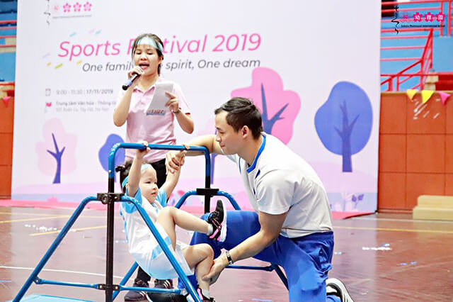 Với thông điệp “One family, One spirit, One dream”, Đại hội Thể thao năm nay đã diễn ra với rất nhiều hoạt động thể chất thú vị, vừa giúp trẻ phát triển thể chất, bồi dưỡng kỹ năng vừa tăng thêm sự gắn bó giữa gia đình và nhà trường cũng như giữa các thành viên bé nhỏ trong cùng một tập thể lớp lớn thông qua các hoạt động vận động.