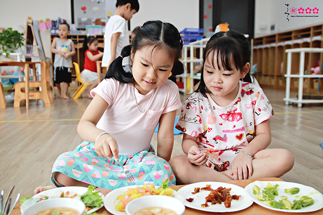 Các con được quan sát bằng thị giác, cảm nhận bằng khứu giác và thưởng thức bằng vị giác. Những món ăn này có lẽ đã quen thuộc với một số bé, nhưng được thưởng thức tại lớp học là một trải nghiệm mà các bạn nhỏ vô cùng yêu thích.