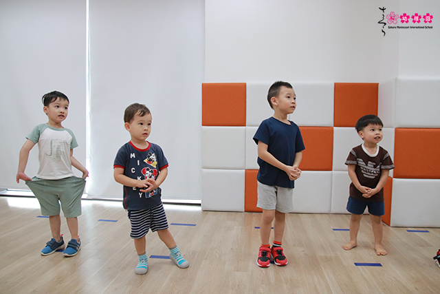 Và ba mẹ biết không, tại Sakura Montessori, hoạt động Thể chất JACPA là một trong những môn học bổ ích và thú vị. Các bài tập với độ khó tăng dần giúp các con phát triển sức bật của đôi chân, rèn luyện hệ tiền đình và sự dẻo dai cơ thể.