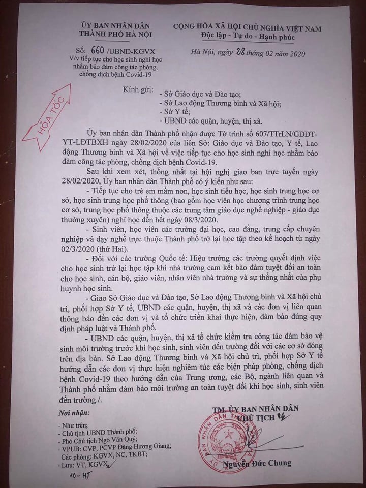 Trong thời gian này, Quý Phụ huynh và Học sinh vui lòng tuân thủ các hướng dẫn phòng chống dịch do Bộ Y Tế khuyến cáo. Nhà trường sẽ tiếp tục theo dõi tình hình bệnh dịch và liên tục cập nhật thông tin tới Quý Phụ huynh.