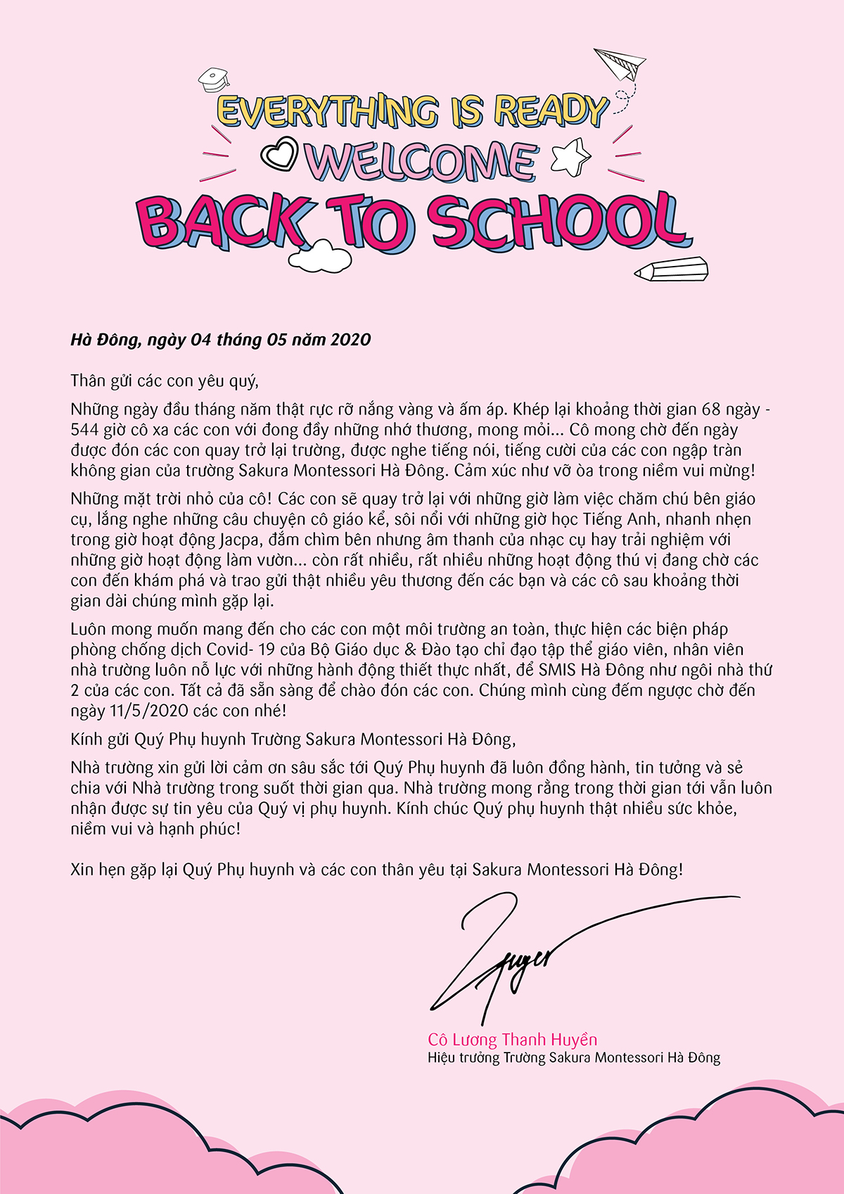 Kính gửi Quý Phụ huynh Trường Sakura Montessori Hà Đông,