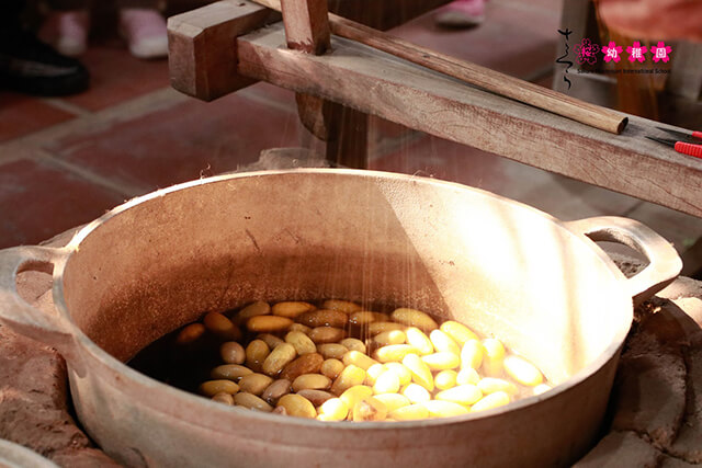 Cầm trên tay những lá dâu xanh non, SMISers tiếp tục cuộc hành trình qua khu vực kéo kén thủ công bằng tay, guồng tơ và mắc cửi. Các con chăm chú theo dõi các cô, các bác kéo những sợi tơ vàng óng và dệt nó thành một tấm vải lụa tuyệt đẹp.