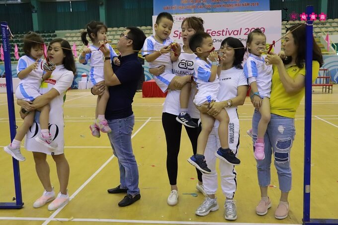 Ngoài những trò chơi dành riêng cho các con, Đại hội Thể thao còn mang đến cho ba mẹ một không gian gắn kết thú vị giữa ba mẹ và các bạn nhỏ. Đại hội Thể thao càng trở nên hân hoan, trọn vẹn hơn khi các ba mẹ cũng xuống tham gia trò chơi cùng với các “vận động viên nhí”.