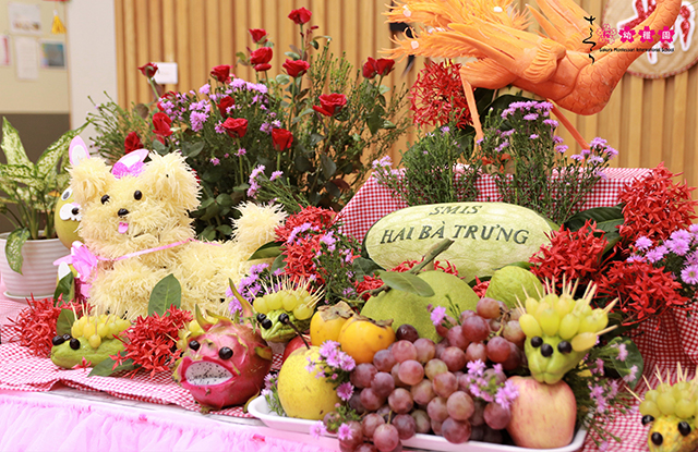 Ngay từ sáng đến lớp, các con đã vô cùng thích thú, bất ngờ với mâm ngũ quả ngộ nghĩnh đầy sáng tạo cùng với những chiếc đèn ông sao sặc sỡ được treo khắp sảnh lễ tân. Bạn nào trông cũng thật xinh tươi, lộng lẫy trong những chiếc áo dài được ba mẹ chuẩn bị kỹ càng từ hôm trước.