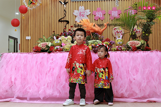 Ngay từ sáng đến lớp, các con đã vô cùng thích thú, bất ngờ với mâm ngũ quả ngộ nghĩnh đầy sáng tạo cùng với những chiếc đèn ông sao sặc sỡ được treo khắp sảnh lễ tân. Bạn nào trông cũng thật xinh tươi, lộng lẫy trong những chiếc áo dài được ba mẹ chuẩn bị kỹ càng từ hôm trước.