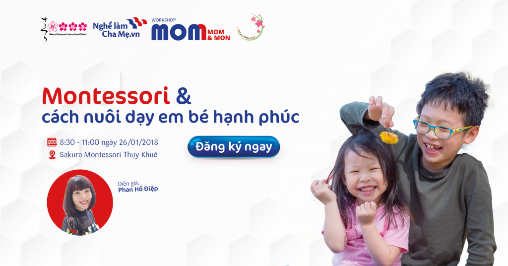 Thấu hiểu điều đó, trường Mầm non Quốc tế Sakura Montessori Thụy Khuê tổ chức Workshop “Montessori và cách nuôi dạy em bé hạnh phúc”. Đây là một món quà đặc biệt thay cho lời tri ân chân thành mà nhà trường muốn dành tặng cho ba mẹ có con trong độ tuổi mầm non nhân dịp Tết đến, Xuân về.